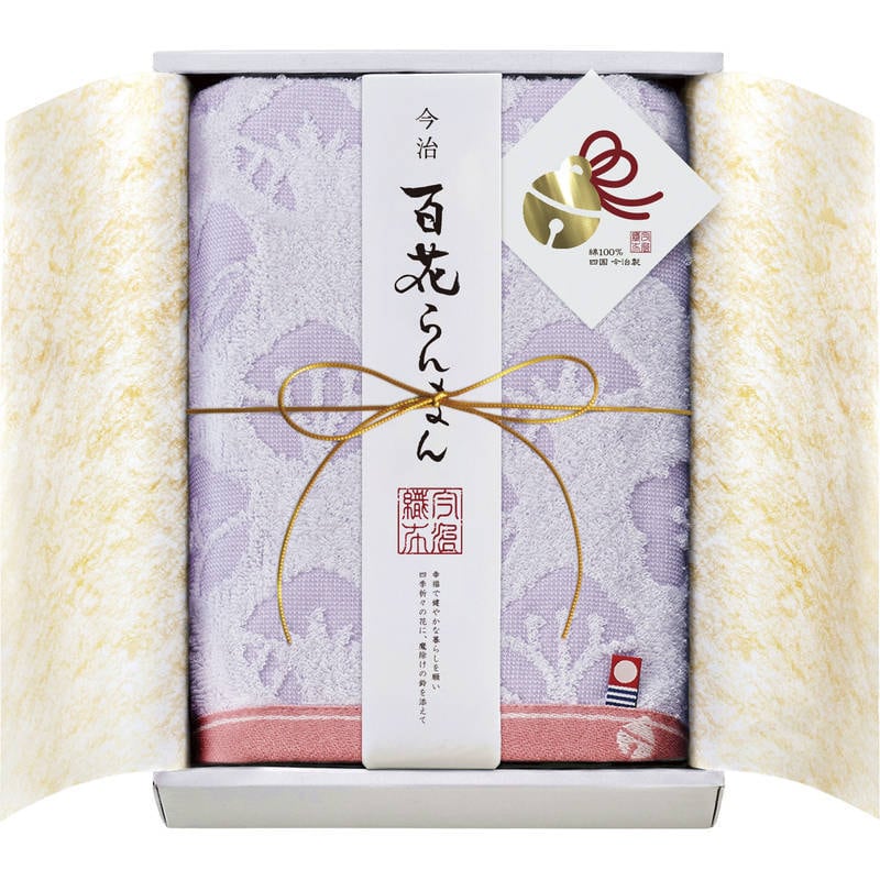 縁起のよい四季の花と魔除けの「鈴」をさりげなく添えました。日本の春夏秋冬をタオルでお届けします。