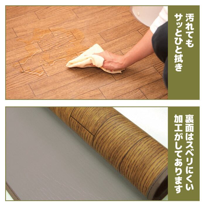 トイレのお掃除は大変ですが、とくに面倒なのが床のトイレマットです。都度、洗濯機で洗わないといけないのが苦痛になるという貴方にオススメなのがこのトイレマット。フローリングをモチーフした柔らかな樹脂素材で、表面は濡れてもサッとひと拭きするだけでキレイに。洋式便座の床にフィットするようにデザインカットされてますのでそのまま置いて使えます。サイズは3タイプで、床サイズに合わせてセレクトできます。また、万一の場合、ハサミ等でカットすることも可能です